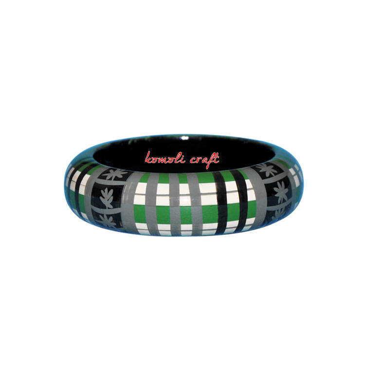 Pulseras de madera hechas a mano con patrón de cuadros, brazalete de madera pintado a mano