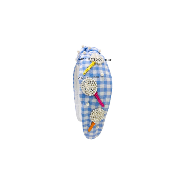 Diademas de golf con cuentas y diseño a cuadros, hechas a mano, personalizables, con nudos, elegantes, accesorios deportivos para el cabello, diademas de golf artesanales.