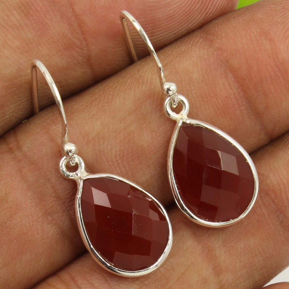 Pendientes de cornalina de pera a cuadros en plata de ley sólida 925, piedras preciosas de cornalina roja, Pendientes colgantes de moda para mujeres y niñas