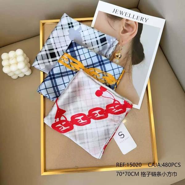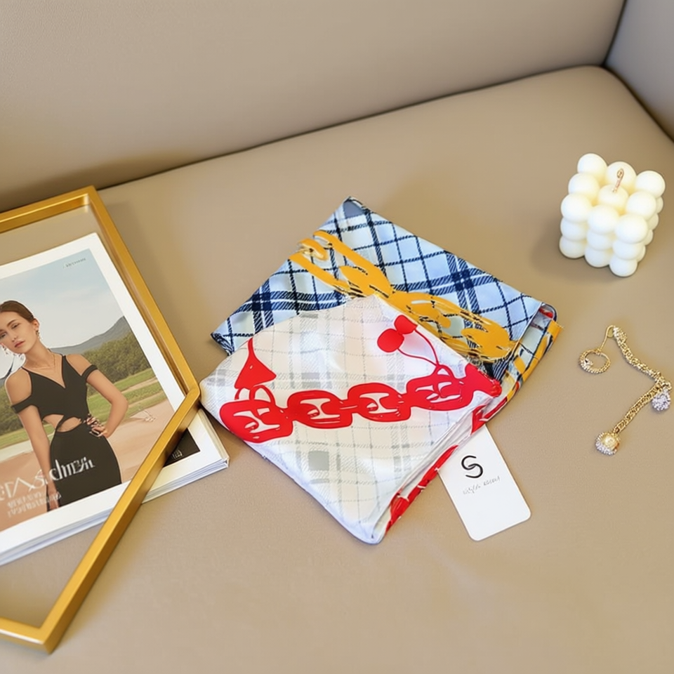 Pañuelo Cuadrado Pequeño con Cadena a Cuadros 70x70cm Accesorio de Moda para Mujer