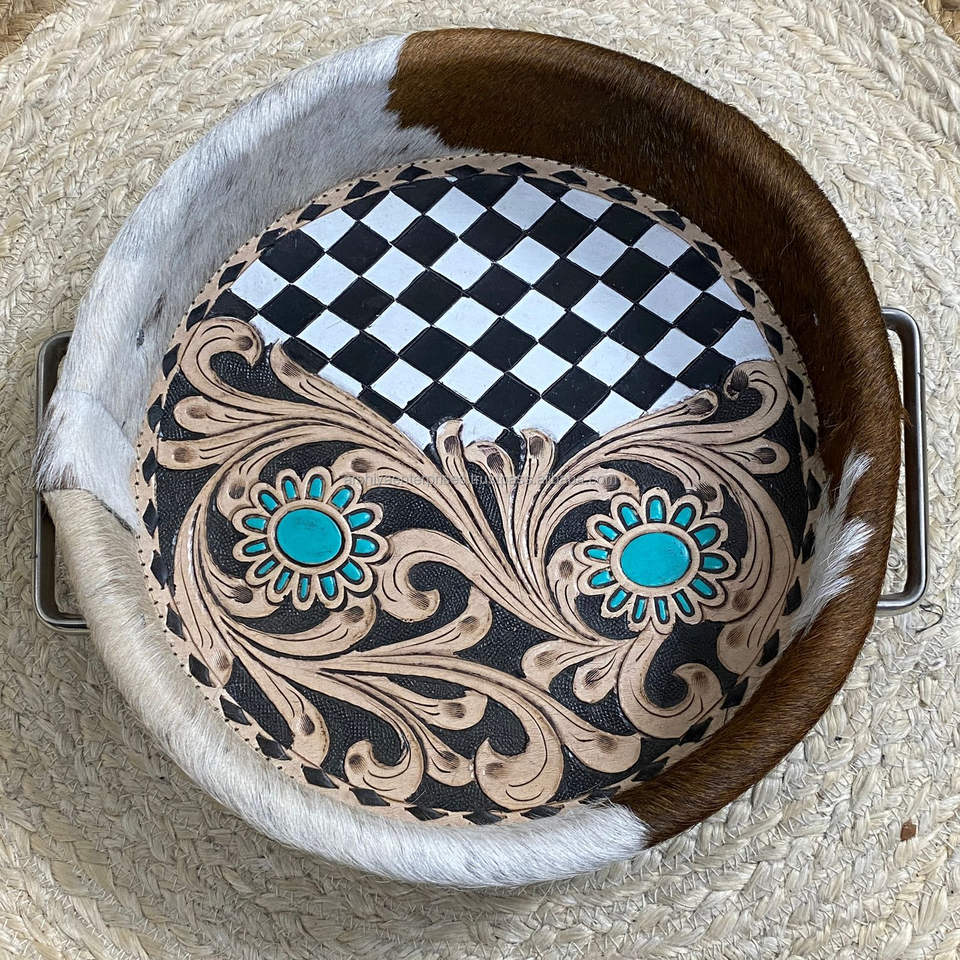 Type:Hand Tooled Checkered Leather Serving Tray
