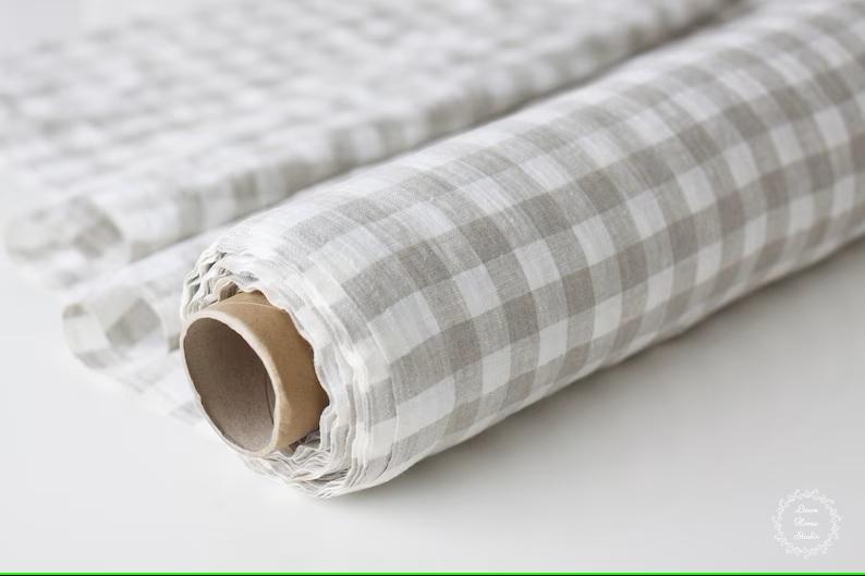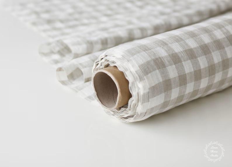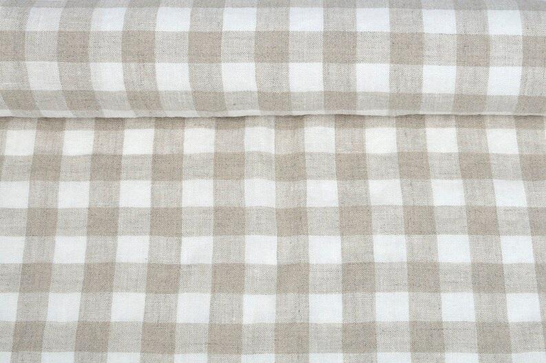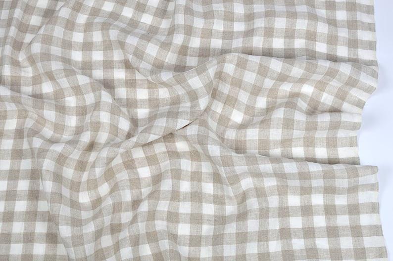 Tela de lino 100% orgánico Natural lavada a la piedra a cuadros blanco Beige tejido técnicas para textiles para el hogar ropa de cama sofá vestidos-para