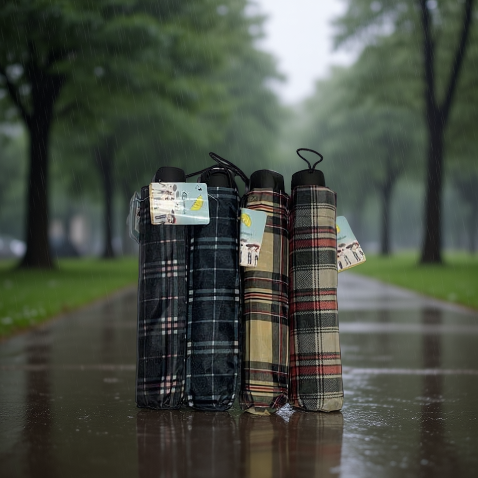 Checkered Umbrellas Mixed Pack 12Pcs Compact Foldable Rain Protection
