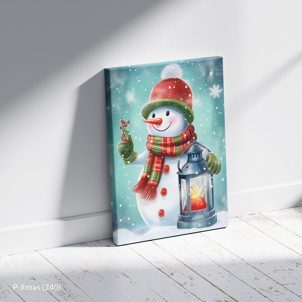 Muñeco de nieve moderno alegre con linterna azul HD lienzo decoración marco de madera precio de fábrica