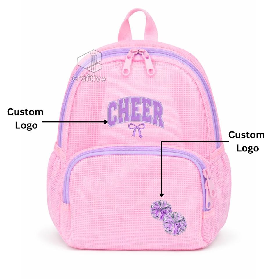 Mochila de malla para animadoras, ligera, transpirable, para deportes, escuela, práctica de baile, con logotipo bordado