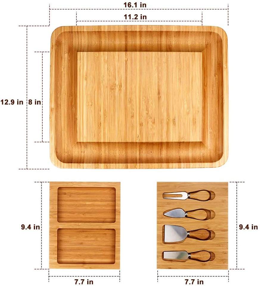 Bamboo Cheese Board with Cheese Tools for Wine Cracker Brie and Meat