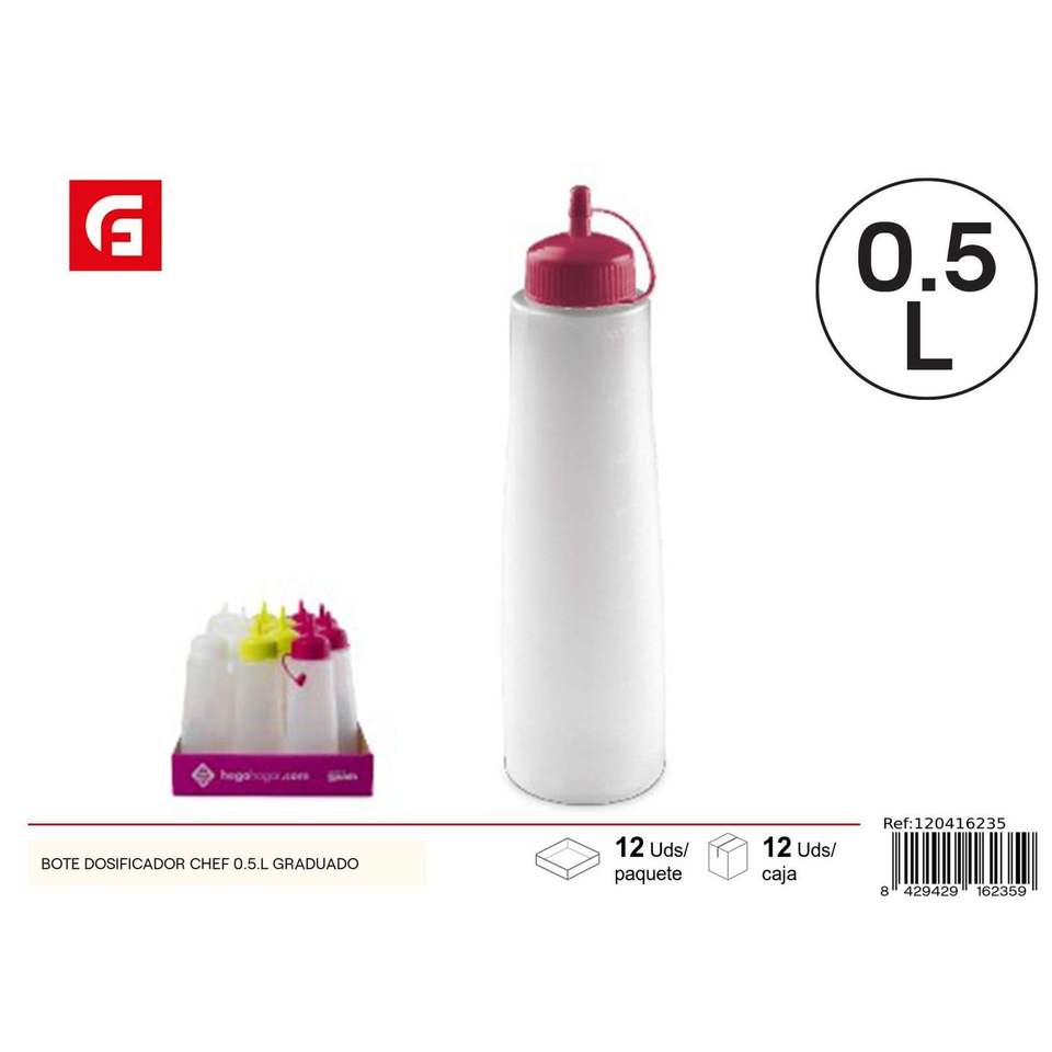 Botella Dosificadora Graduada de Plástico Chef de 0.5 L, Herramienta de Medición para Uso en Repostería