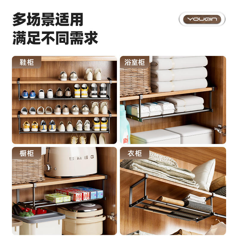 Zapatero Telescópico Chef Jun de 40-82 cm, Extensible, Color Gris Metálico, Organizador de Almacenamiento para Armario