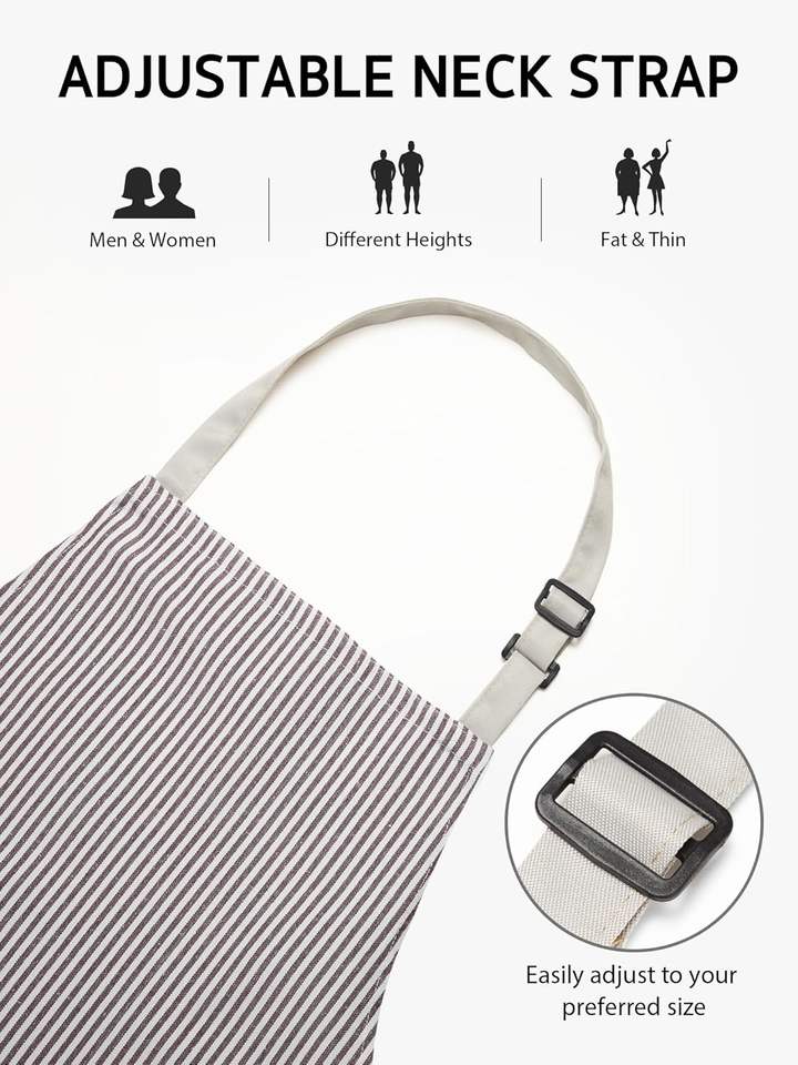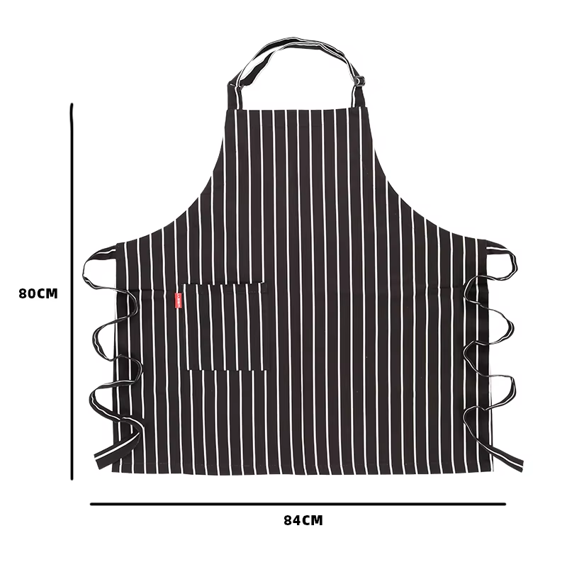 Delantal de rayas negras de Chef Kitchen para servidor de restaurante correa de hebilla ajustable, delantal de trabajo de algodón y lino