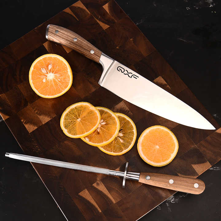 Juego de cuchillos de Chef con afilador 2021 Artículo de regalo Nueva llegada Knight Series 8 pulgadas Juego de dos piezas Cocina Corte Alimentos Cebra Madera