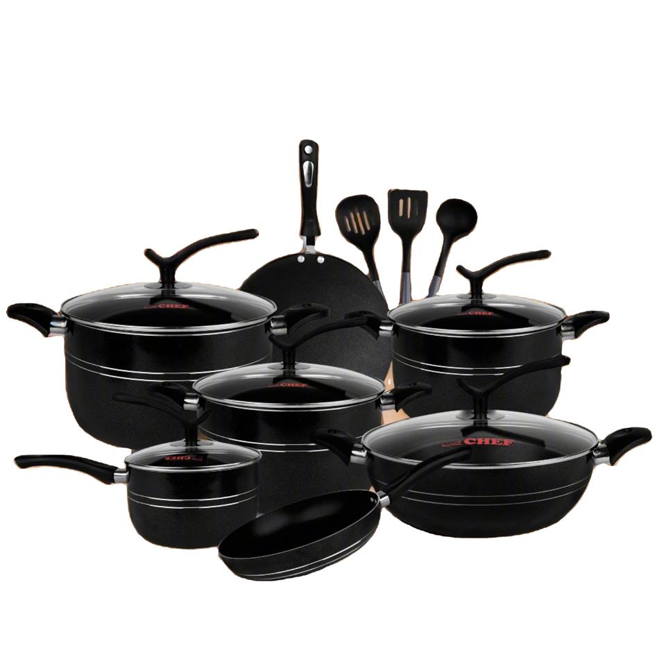 Chef Premium Quality 15PCS Juego de utensilios de cocina antiadherentes con diseño moderno Tapa fácil de soportar Nuevo diseño