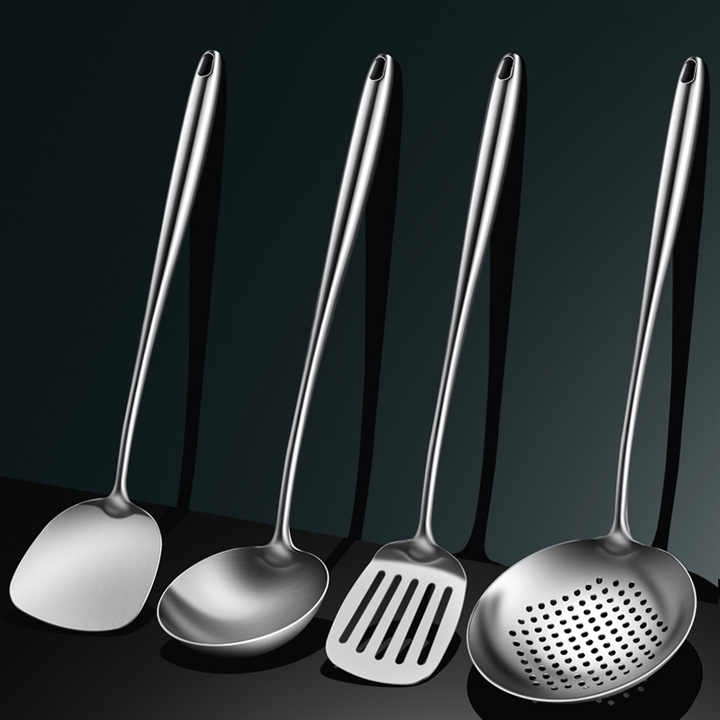 Juego de cuchara para freír de acero inoxidable especial para Chef, olla de hierro con mango largo para el hogar, pala, cuchara para sopa para cocinar