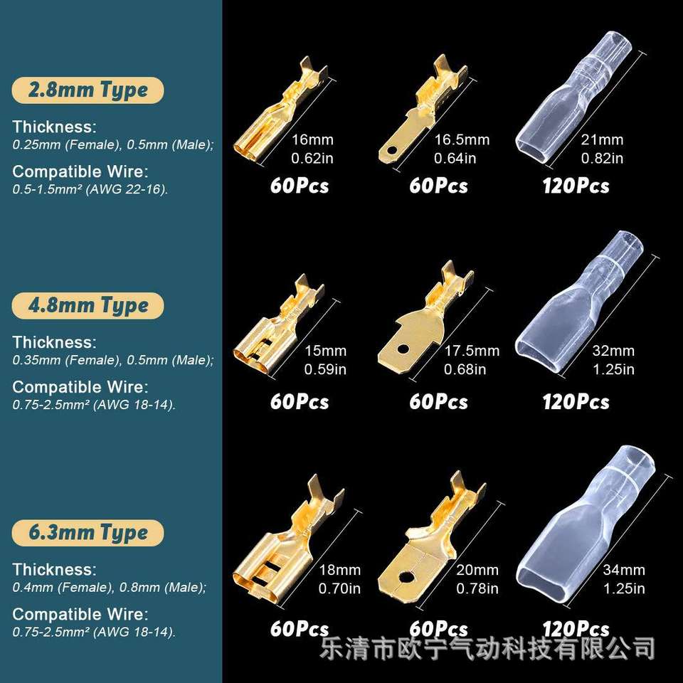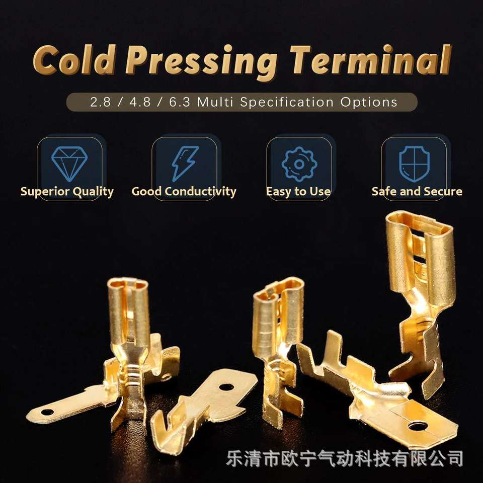 Terminales de crimpado de desconexión rápida para ingeniería química de 2.8mm, 4.8mm, 6.3mm, chapados en oro con cubiertas aislantes
