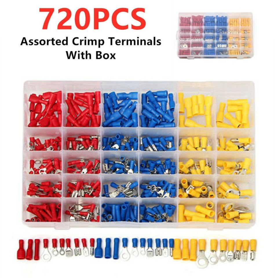 Terminales de crimpado de desconexión rápida para ingeniería química, calibres 0-6 y 12-22 AWG, material PC, juego de 720 terminales estilo europeo