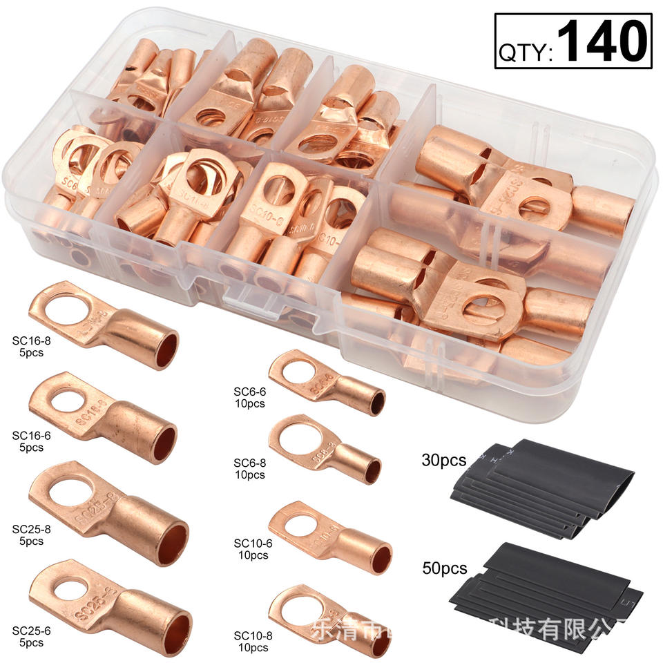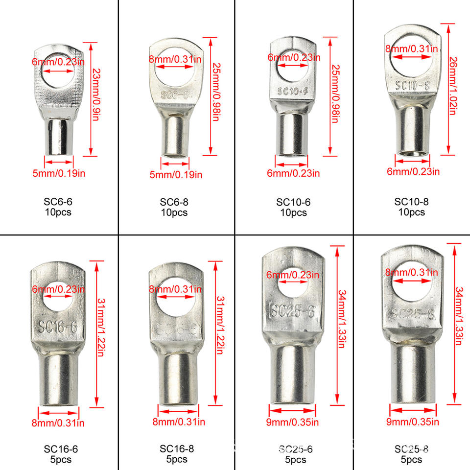 Terminales de Anillo para Ingeniería Química SC6 6 8 10 16 25, Conectores Redondos de Cobre Puro para Crimpado, Estilo Europeo