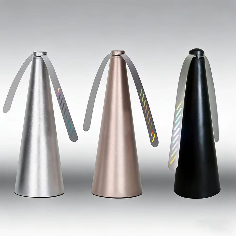 Ventilador Repelente de Moscas Sin Químicos, Disuasor de Moscas Portátil de Mesa con Aspas Holográficas, Paquete Individual Ligero