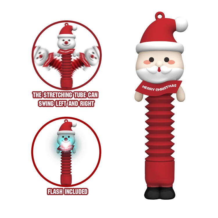 Chenghai SamToyCn 200mm LED Light UP Christmas POP Tube Niño Plástico Telescópico Columpio Sacudir Sensorial Stress Relief Fidget Toy