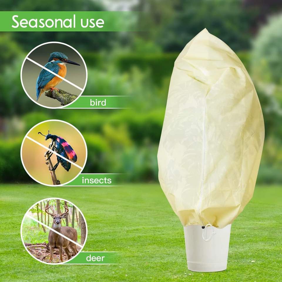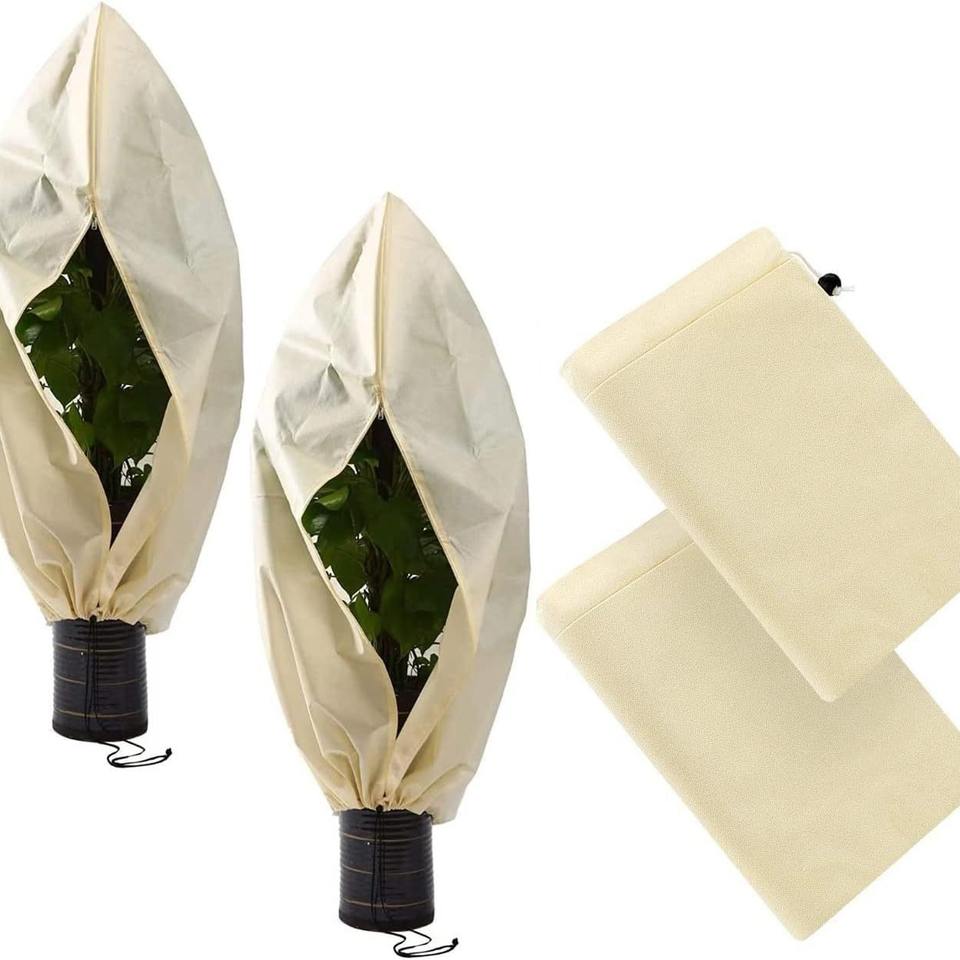 Funda Protectora para Plantas Chengye, Tela No Tejida, con Cordón y Cremallera, para Uso Invernal, Color Blanco Verde Hueso