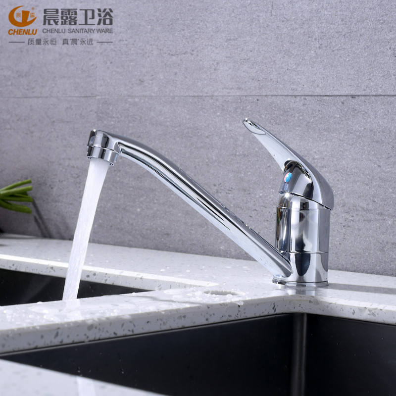 Grifo de Cocina Chenlu Monomando de Sobremesa con Rotación de 360 Grados, Válvula de Cerámica, Agua Fría y Caliente
