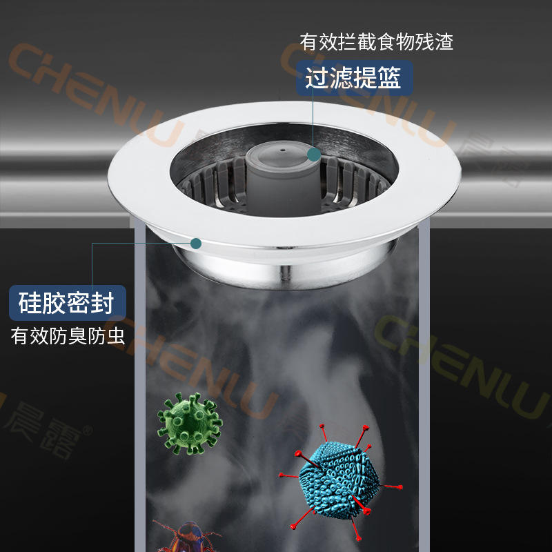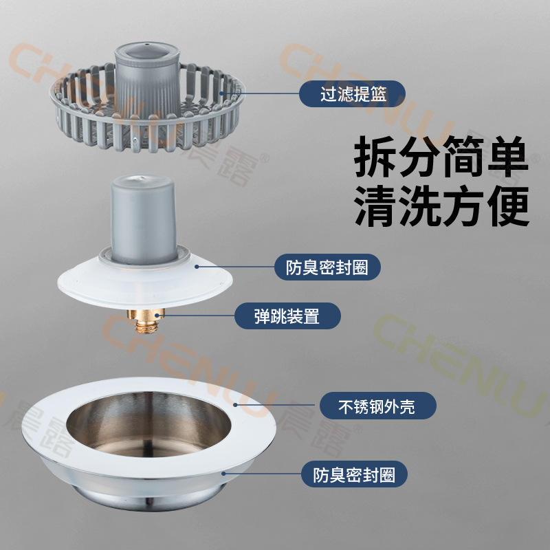 Filtro de desagüe para fregadero Chenlu con núcleo de resorte, a prueba de olores, de acero inoxidable pulido, de inserción, diámetro interior estándar