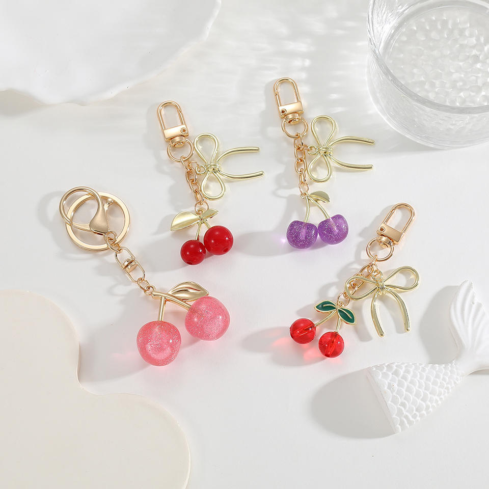 Llavero de cristal 3D de cereza Colorfu, accesorios para bolso de mujer, colgante de coche, llavero de Metal
