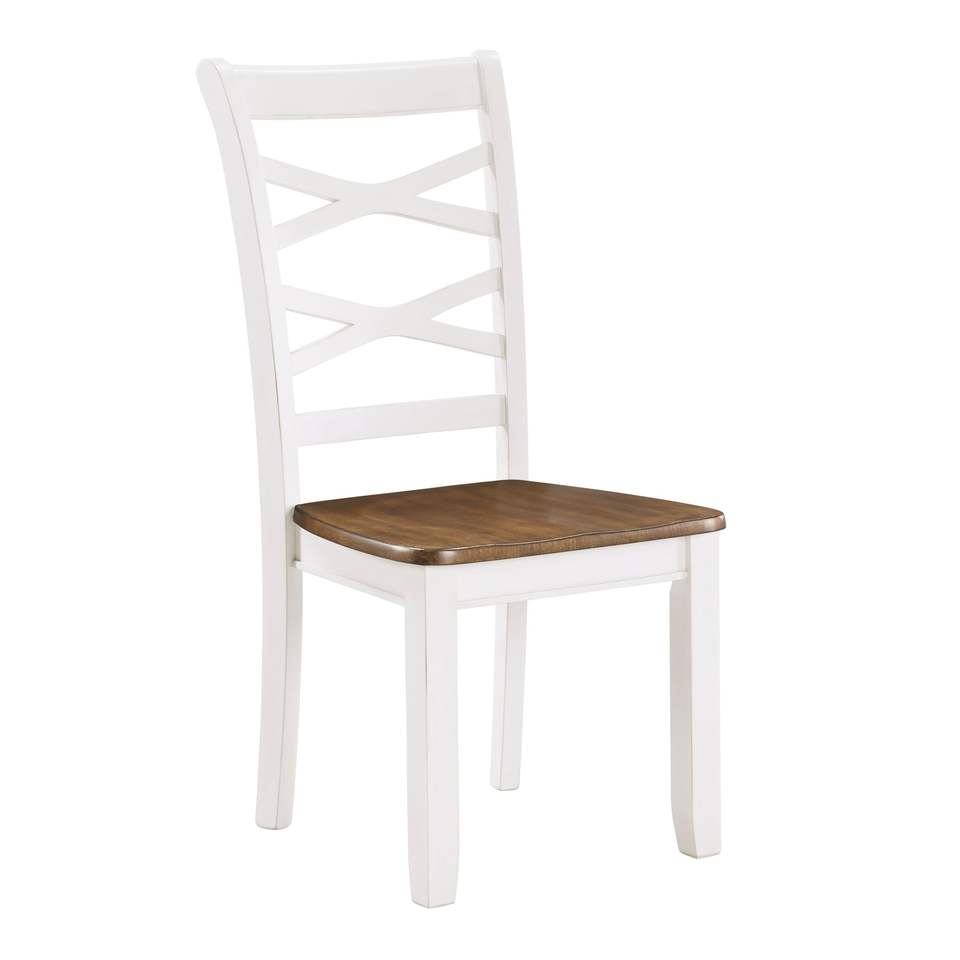 Juego de Comedor Estilo Campestre Cherry de 7 Piezas, Mesa con Acabado Blanco y 6 Sillas Laterales con Respaldo Doble en X, Juego de Comedor Informal de Madera