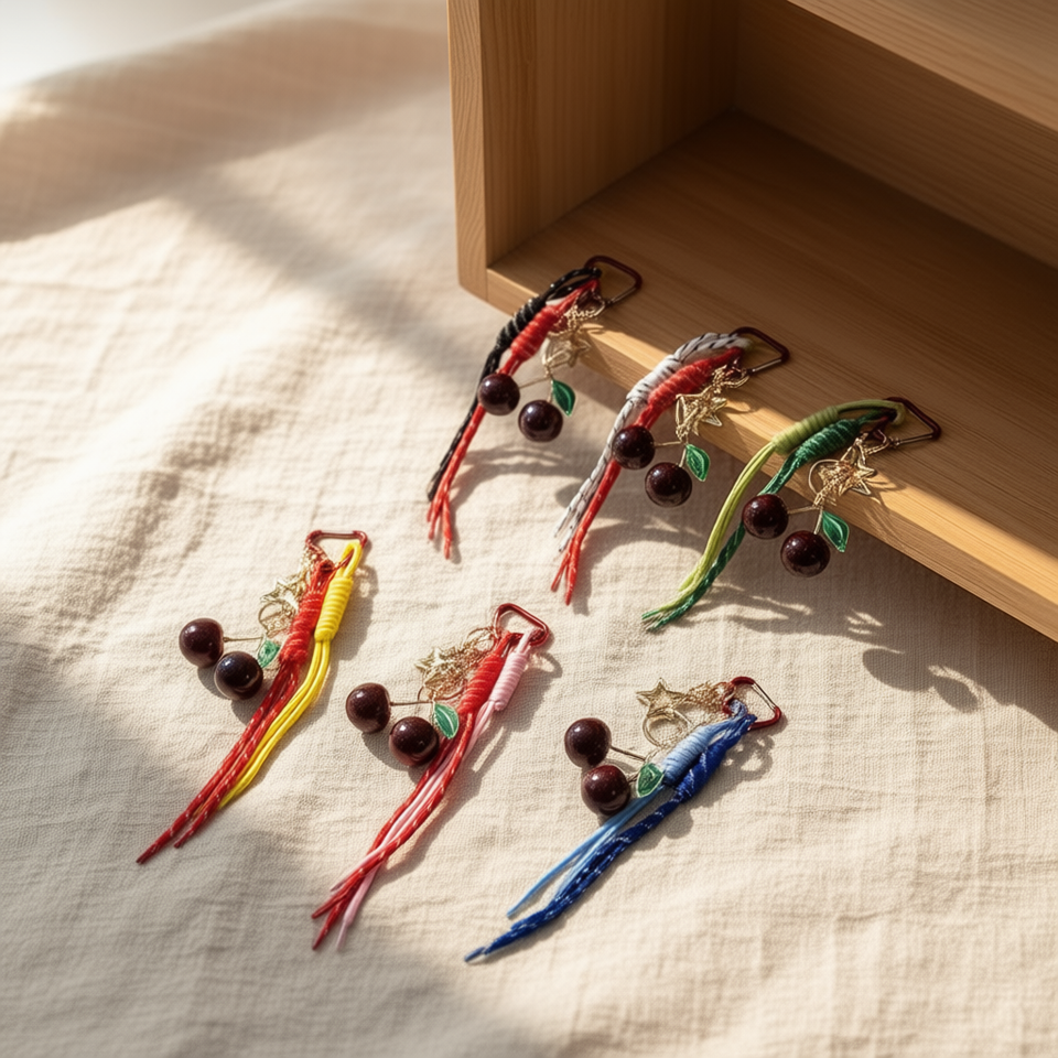 Llavero Cherry Star con colgante de cuerda, accesorio de moda
