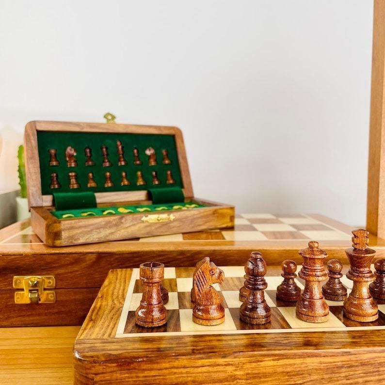 Juego de Ajedrez con Tablero de Madera 100% Hecho a Mano y Juego de Ajedrez de Tamaño Personalizado