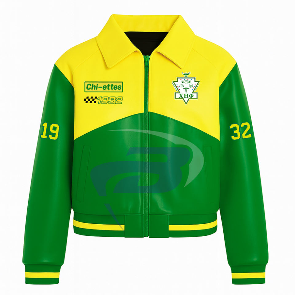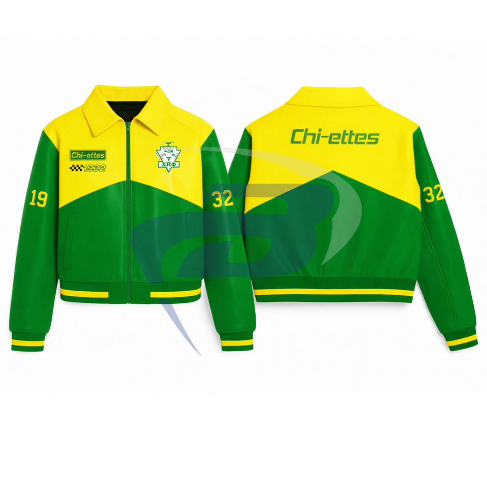 Chaqueta de Carreras Chi Eta Phi Sorority con Cierre de Cremallera, Chaqueta de Carreras Personalizada con Patrón de Llamas de Algodón de Alta Calidad