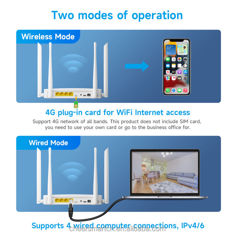 Router Inalámbrico ChiWay en Oferta, Router LTE con Ranura para Tarjeta SIM, Router Wifi Estándar de 300 Mbps, Router 4G con Tarjeta SIM, CPE 4 LAN Italia