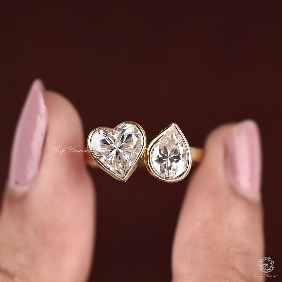 Palabra clave:Anillo de lujo Toi et Moi con forma de corazón y corte de pera, anillo de laboratorio