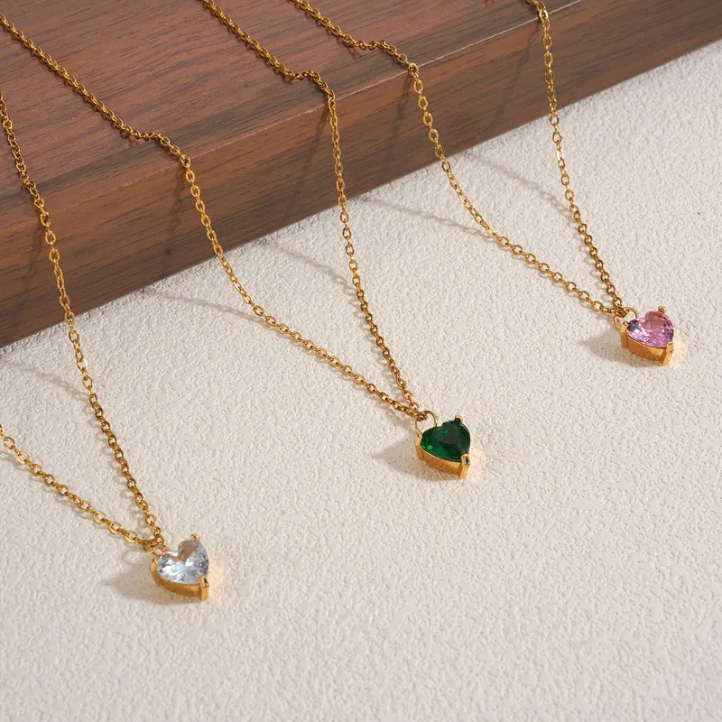 Elegante Collar con Colgante en Forma de Corazón de Circonita, Chapado en Oro de 18K, Acero Inoxidable 304, Electrochapado al Vacío, para Mujer, No se Destiñe