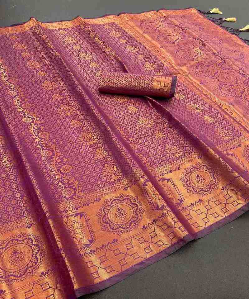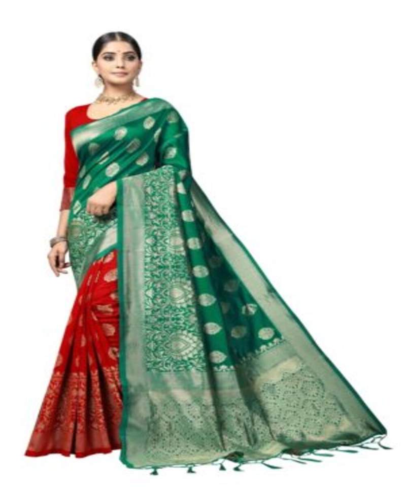 Sari de algodón elegante con detalles estampados y adornos de pelea para uso informal y diario