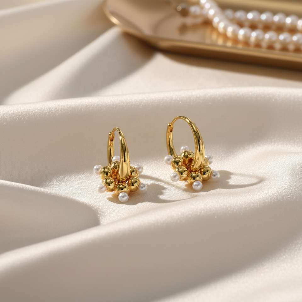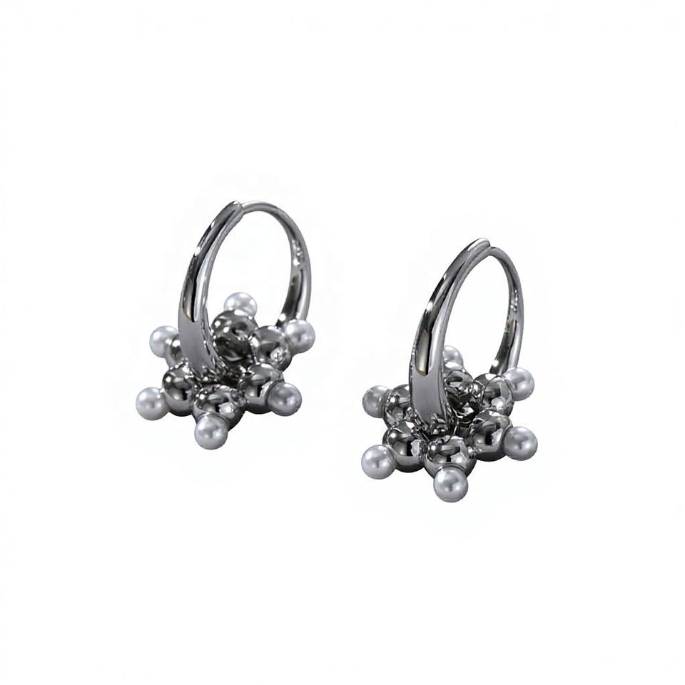 Pendientes de Aro con Incrustaciones de Perlas y Detalles en Oro, Estilo Chic, para Mujer y Hombre, Unisex, de Plata, Tipo Huggie