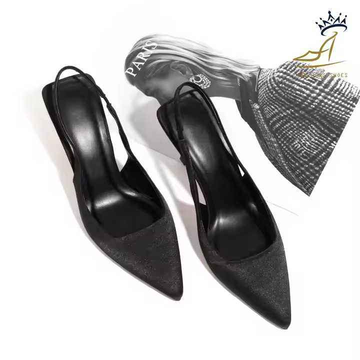 Chic PU Slingbacks con tacón de aguja, papel Premium, satén y material de PU