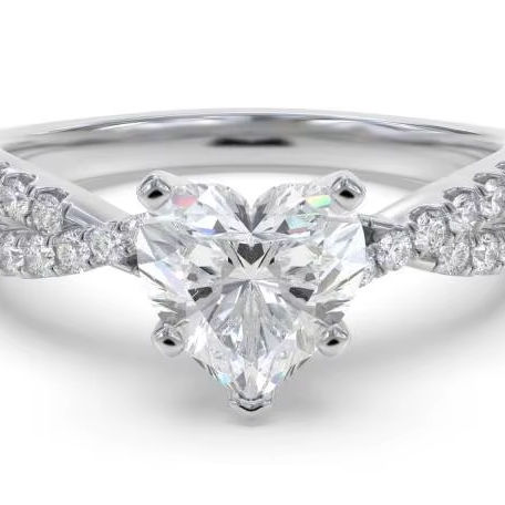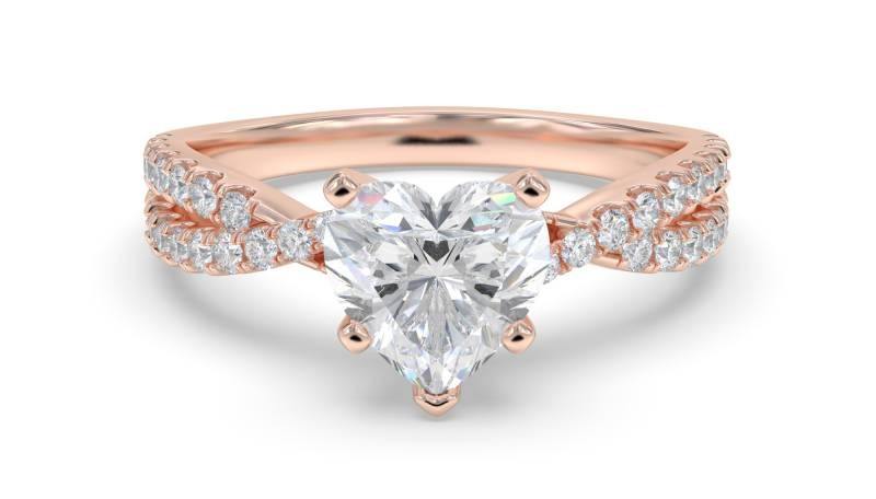 Anillo elegante y único con corazón y diamantes redondos de 0.75 ct, diamante cultivado en laboratorio en oro de 18 quilates y platino.