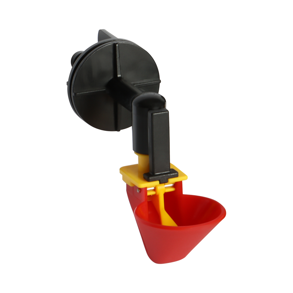 Nombre del producto:Bebedor de taza de aves de corral tamaño pequeño + codo de extensión con tuerca de Ala