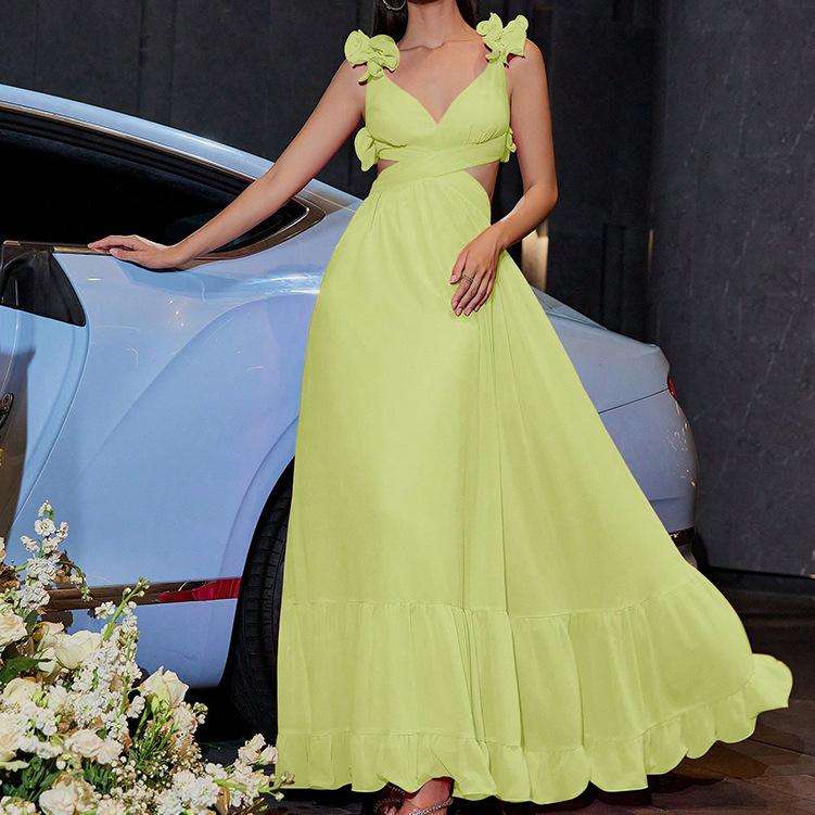 Vestidos de mujer de moda de gasa floral con espalda descubierta, lazo cruzado, plisados y con dobladillo grande