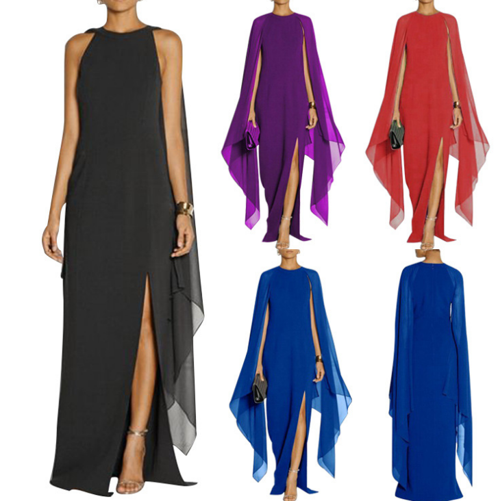 Vestidos largos estilo capa para mujer con aberturas y detalles de chifón, a la moda