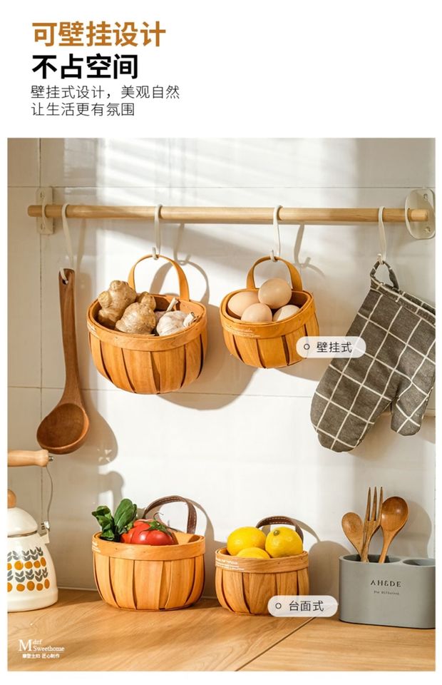 Cesta de almacenamiento de astillas de madera Chiki, cesta tejida de ajo y jengibre para cocina, caja de cebollín colgante pequeña, cesta de bambú de ratán para colgar en la pared