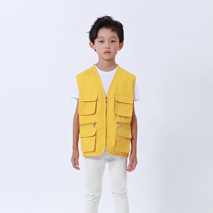 Chaleco multibolsillos para niños, ropa deportiva de poliéster amarilla para exteriores, para uso escolar y voluntario