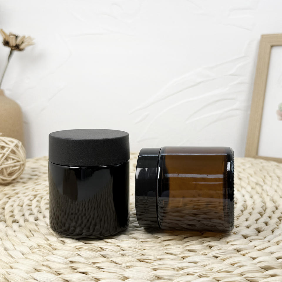 Frasco de vidrio transparente resistente al olor a prueba de niños con tapa CR