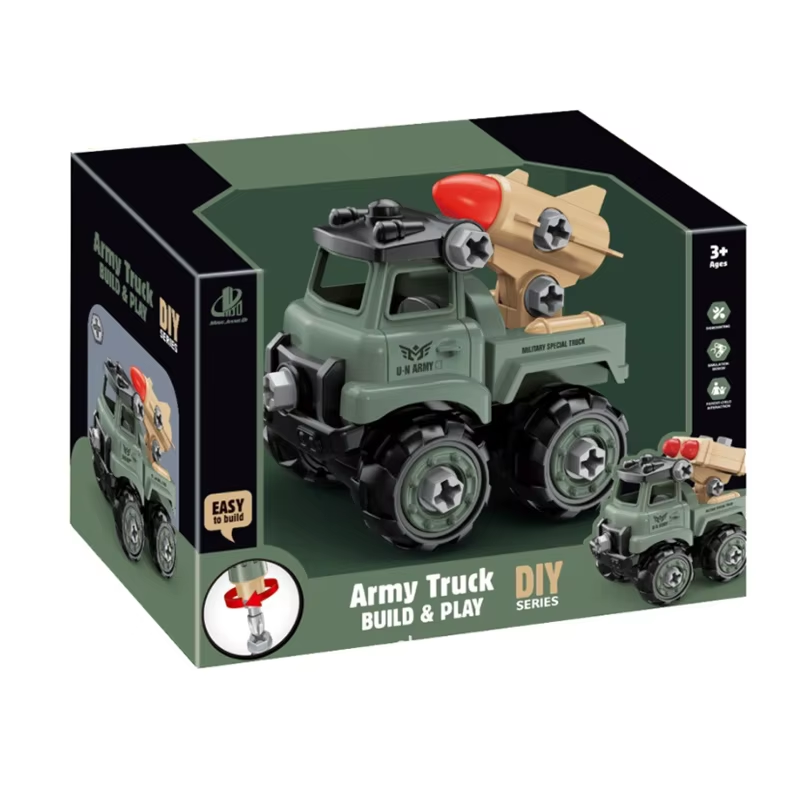 Descripción:Camiones de juguete del ejército para armar DIY para niños