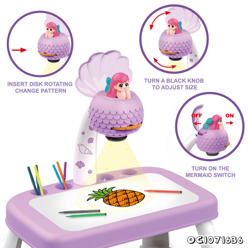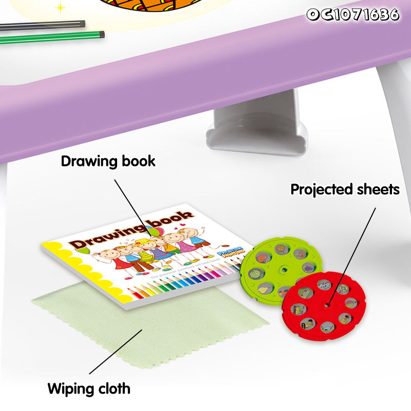 Juego de Proyector LED Interactivo para Niños, Divertida Mesa de Dibujo con Proyección, Juguete de Pintura con 12 Bolígrafos, Libro de Dibujo, Diapositivas para Proyector