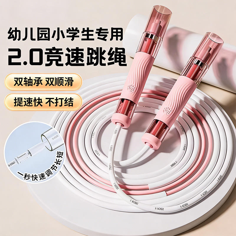 Cuerda para saltar para niños 2.0, cuerda de velocidad con doble rodamiento, longitud ajustable para estudiantes de preescolar y primaria