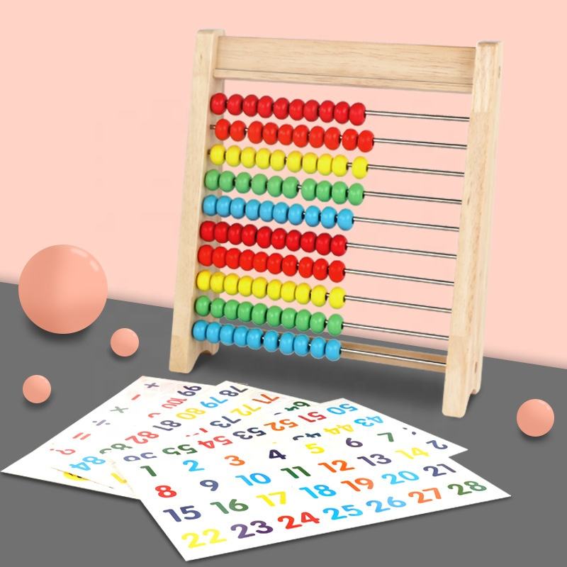 Ábaco Matemático para Niños, Material Didáctico de Madera Montessori para Primaria, Primer Grado, Enseñanza de Matemáticas con Perlas
