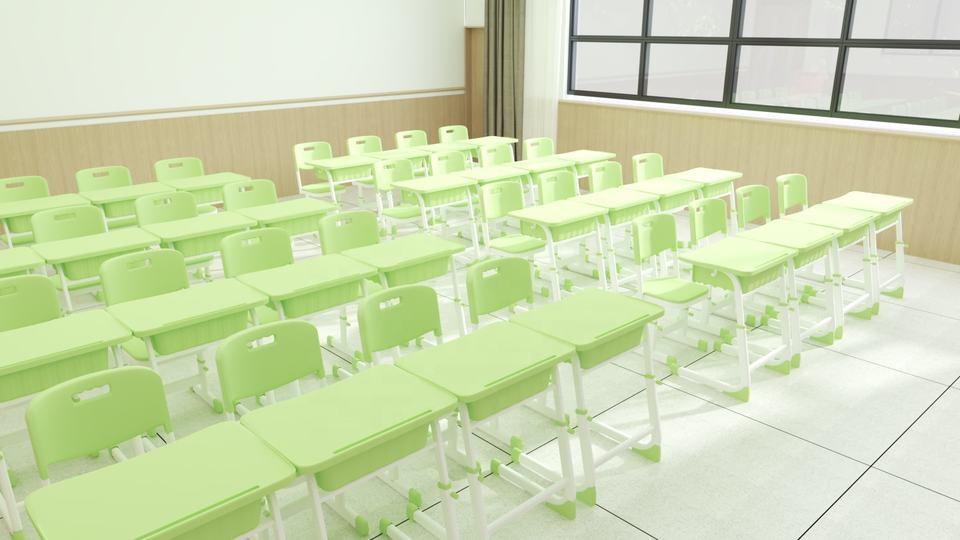 Niños de plástico niños Universidad aula estudio MESA y silla escritorio conjunto en la escuela para estudiantes