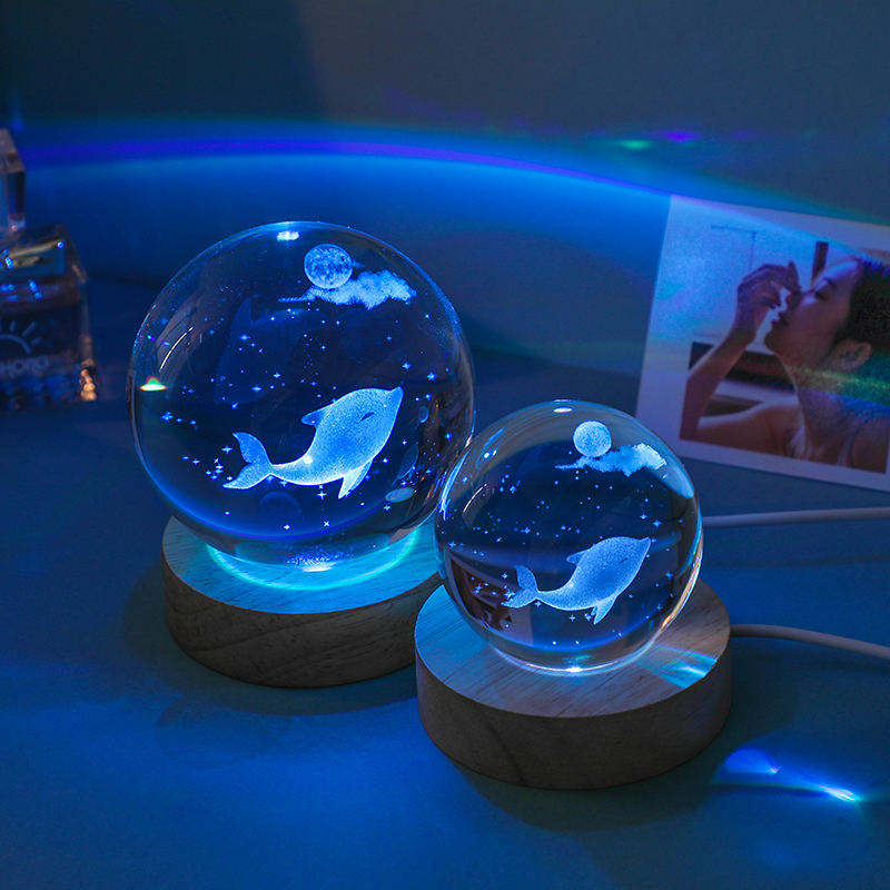 Lámpara Nocturna LED 3D de Luna y Planetas para Niños, 6CM 8CM, Carga USB, Lámpara de Mesa con Bola de Cristal, Decoración de Concha de Medusa, Regalo para Dormitorio