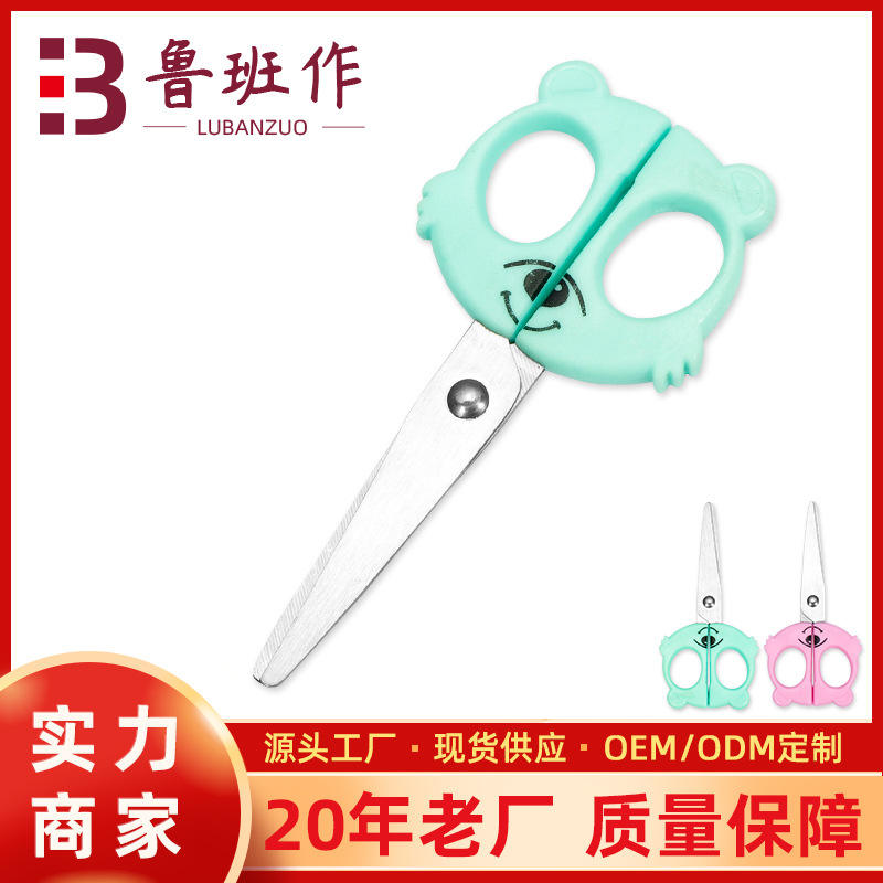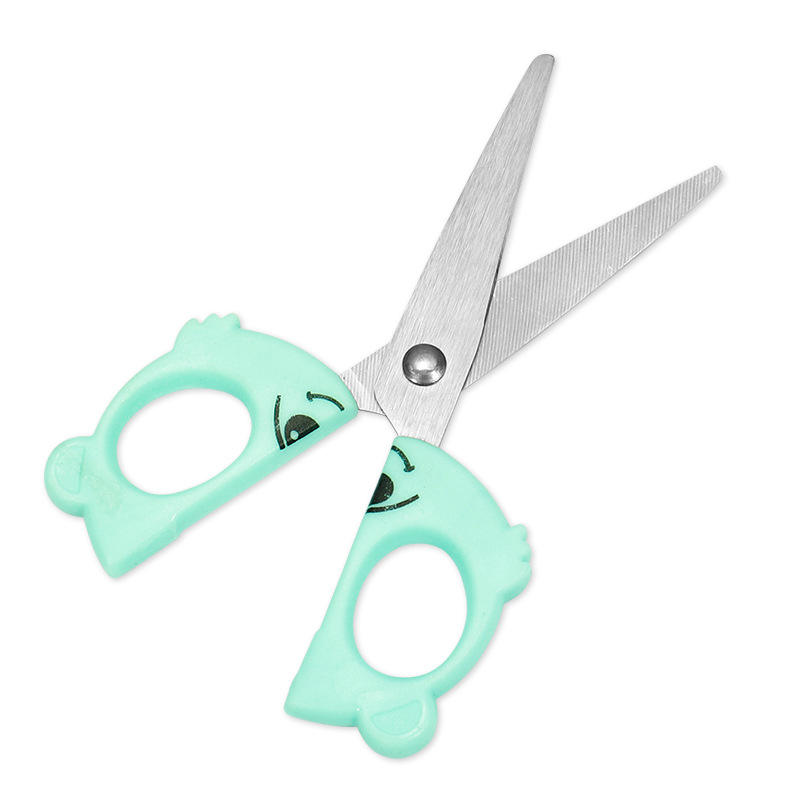 Children's Cartoon Craft Scissors Stainless Steel Round Tip Green Pink For Paper Cutting Home Use