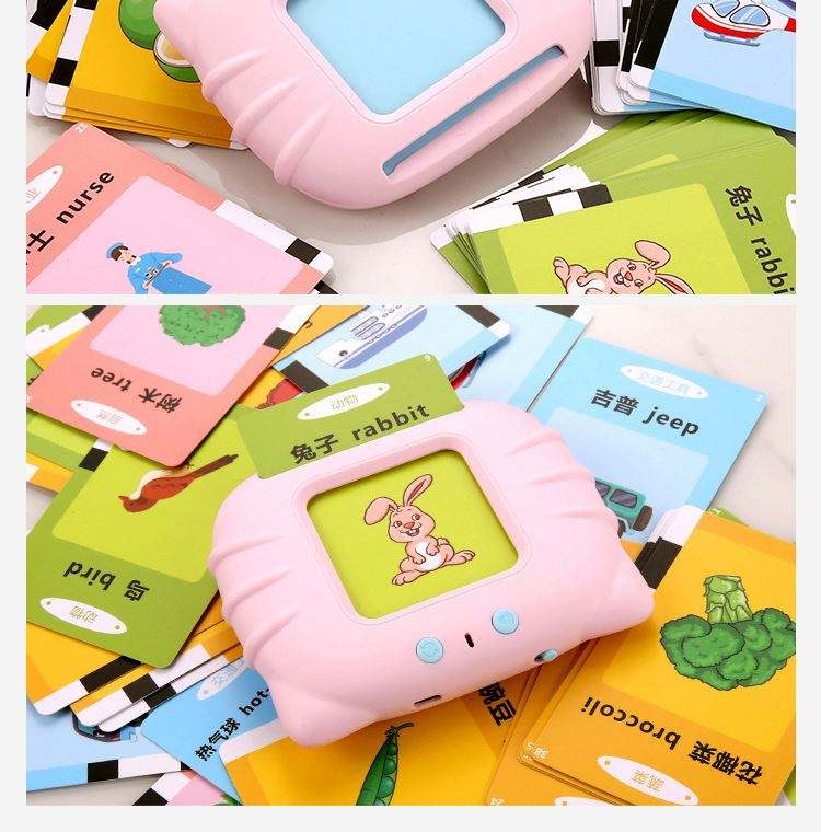 Máquina de Tarjetas Didácticas Interactivas para Niños, Dispositivo de Aprendizaje Multilingüe de Plástico, Juguete Educativo con Música y Lectura en Inglés